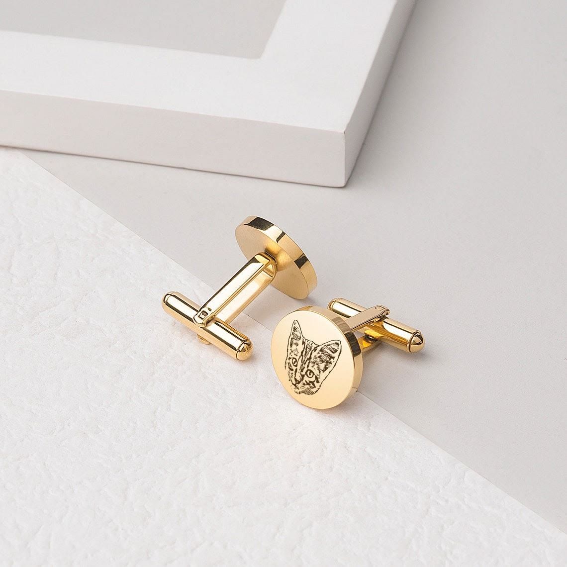 1 Pair Custom Pet Portrait Button Covers Set Cufflinks - Gold - image 0