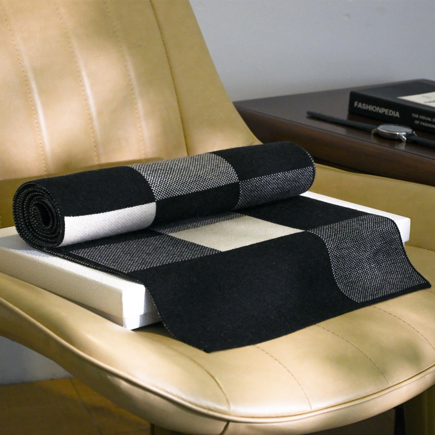 The classic plaid pattern never goes out of style, pairing seamlessly with various men’s outfits—whether it’s a casual jacket, tailored coat, or sweater. It adds a touch of refined charm to your look, while the sleek black and beige tones bring a timeless, understated vibe to your winter ensemble.