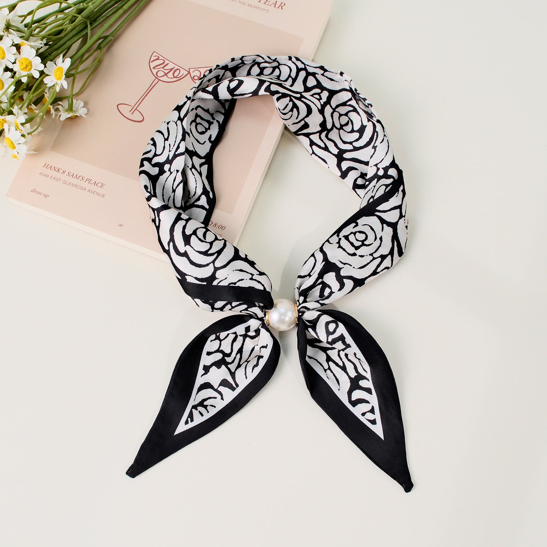 These scarves boast elegant retro patterns including paisley and polka dot in classic tonal schemes, paired with delicate pearl accents for a refined, charming look while ensuring lightweight all-day comfort.