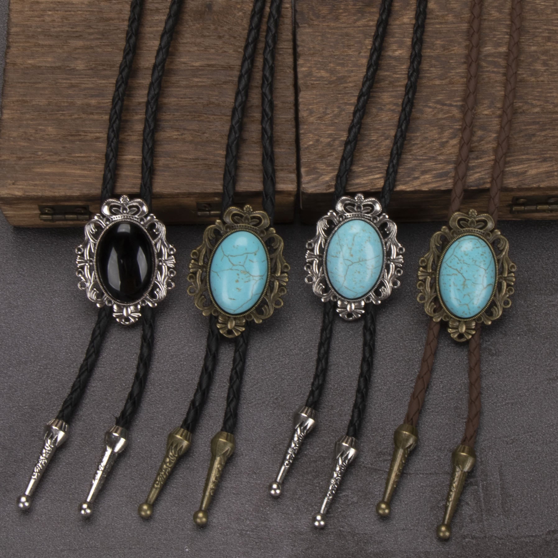 Retro Western Turquoise Elliptical Pendant Bolo Tie