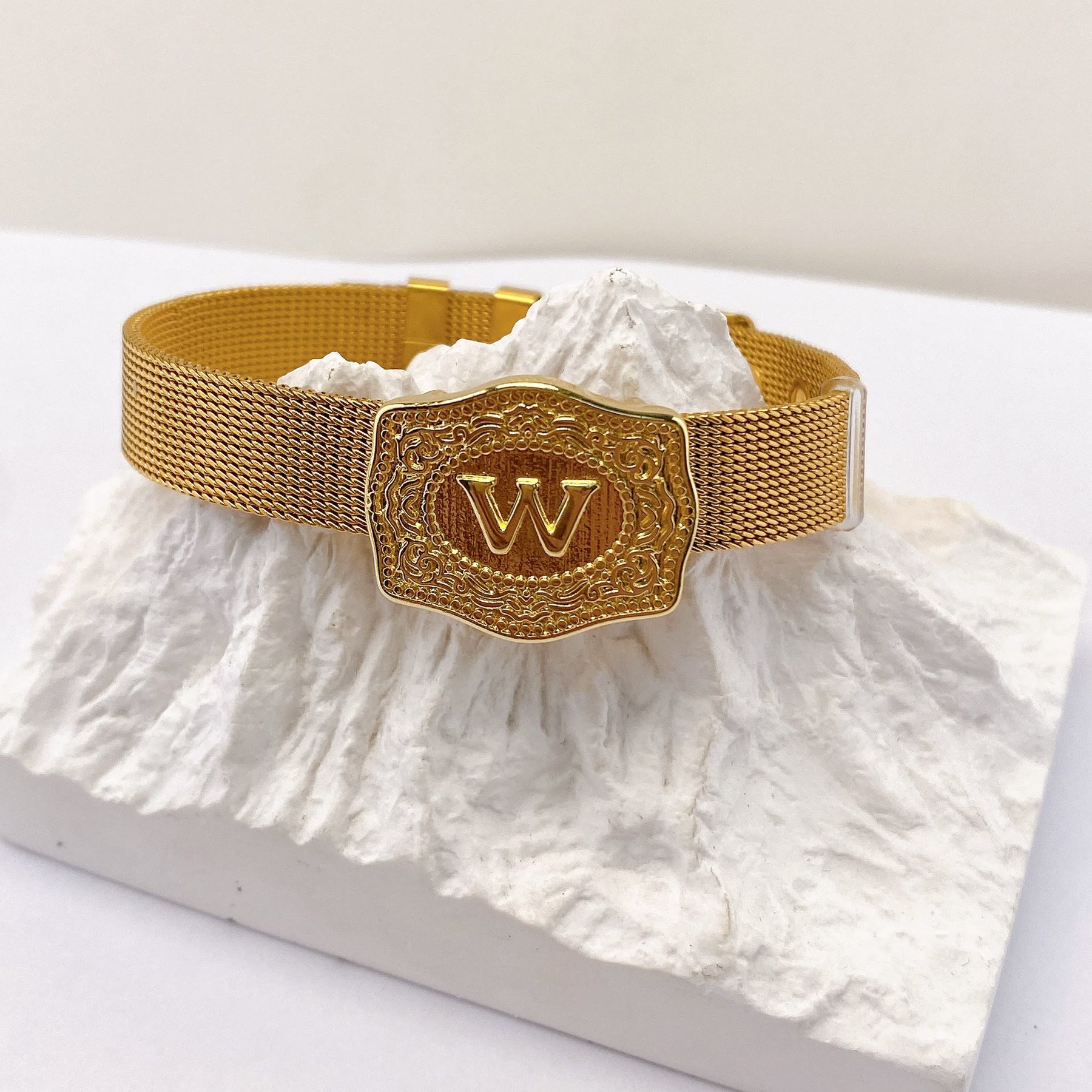 Glamorous Gold Tone Engraved Initial Letter Bracelet - W - image 22
