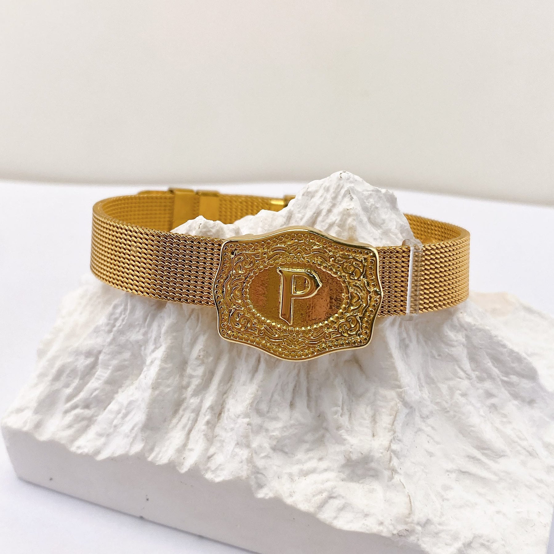 Glamorous Gold Tone Engraved Initial Letter Bracelet - P - image 15