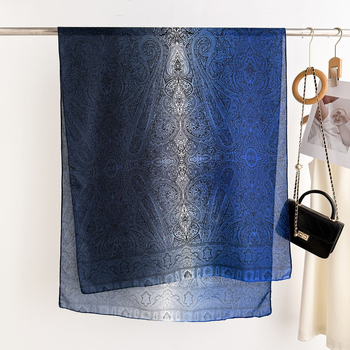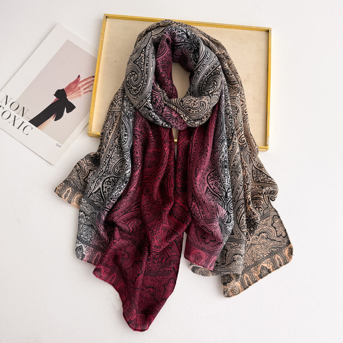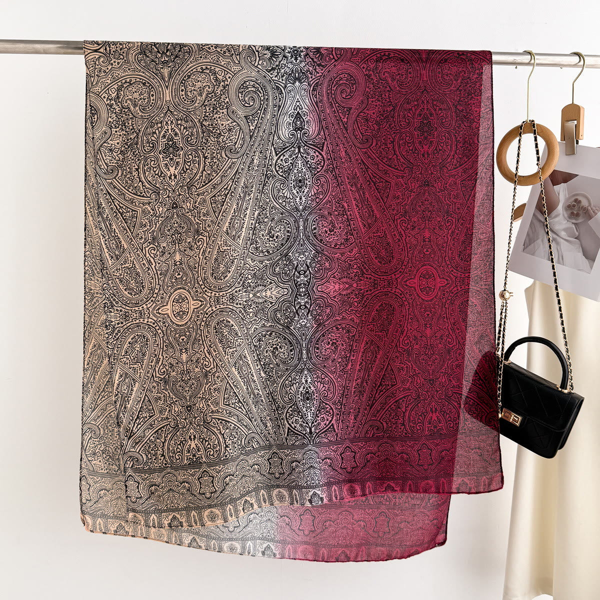 This scarf boasts elaborate vintage paisley motifs and a lightweight sheer texture, bringing a timeless ornate touch to your styling. It suits daily errands, weekend outings, and semi-formal gatherings alike.