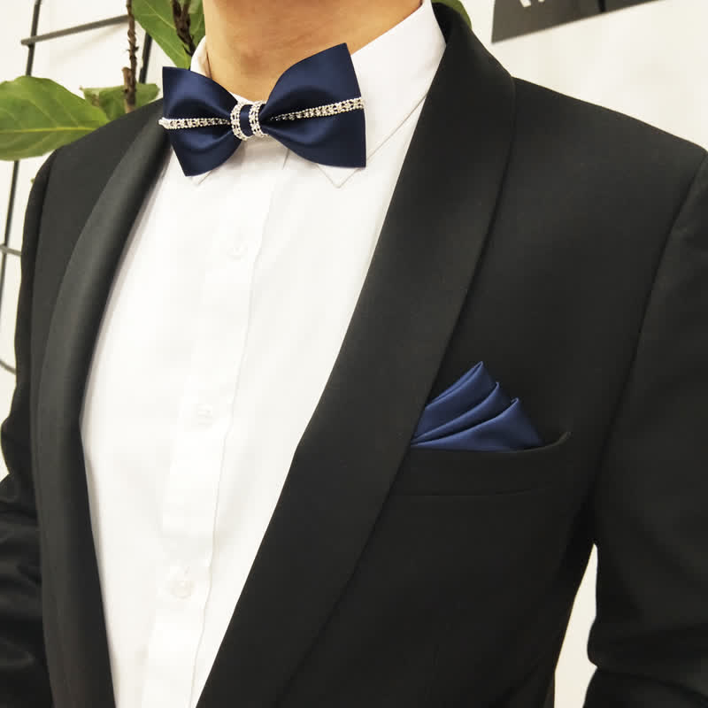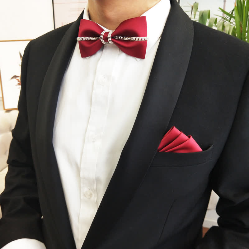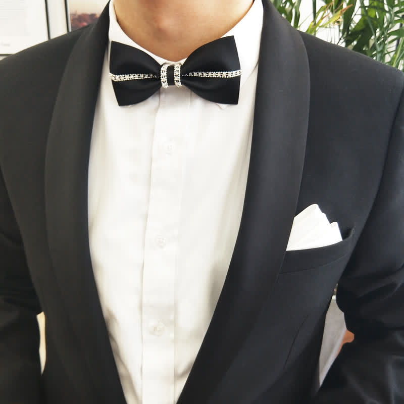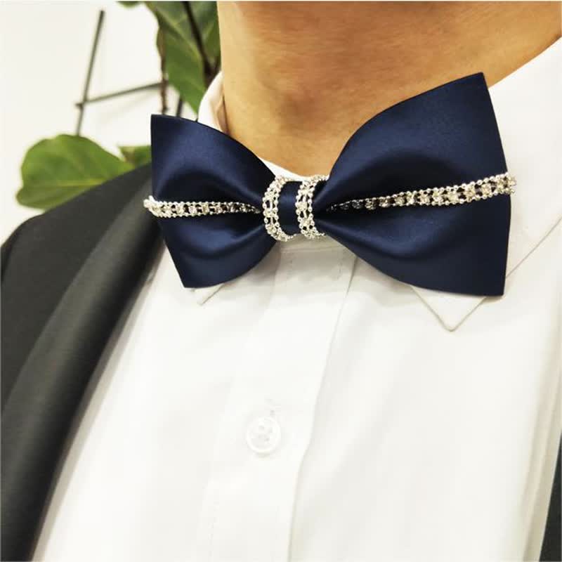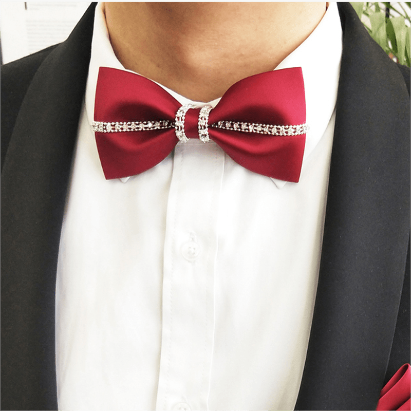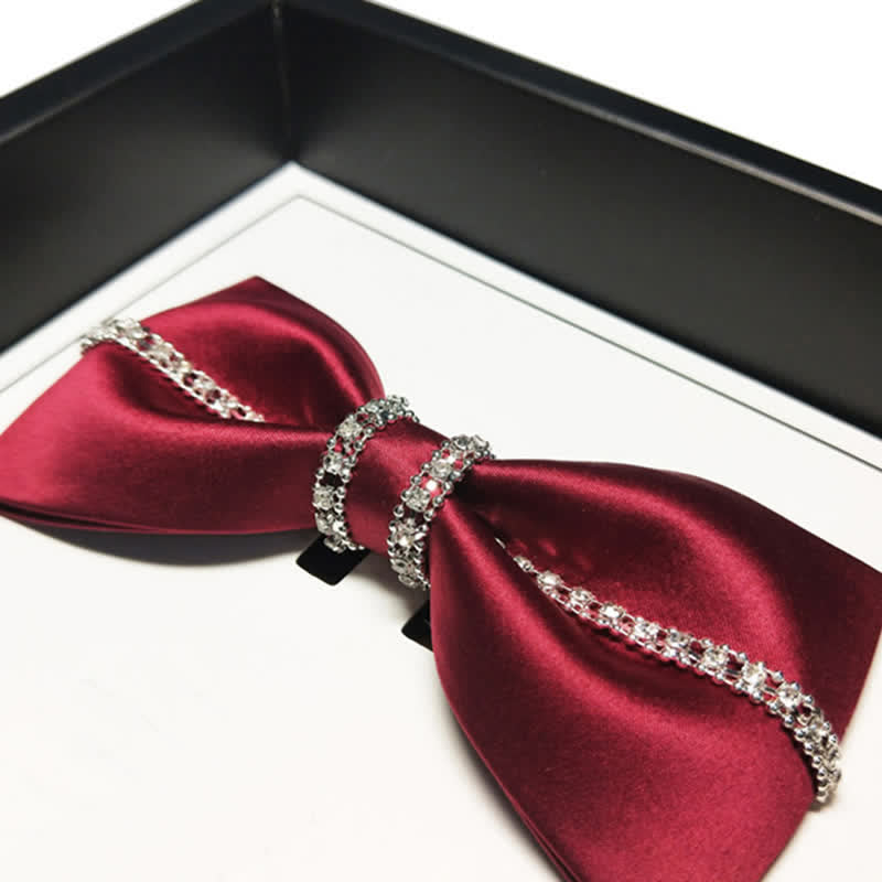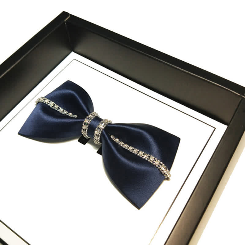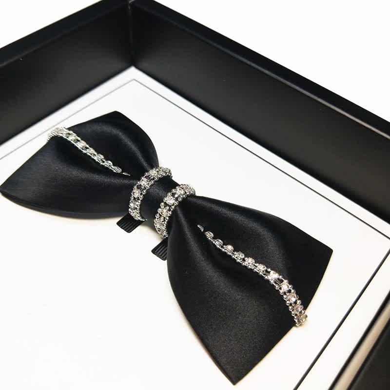 - Beautiful bow ties are handmade from finest satin fabrics, with sparkling rhinestones.