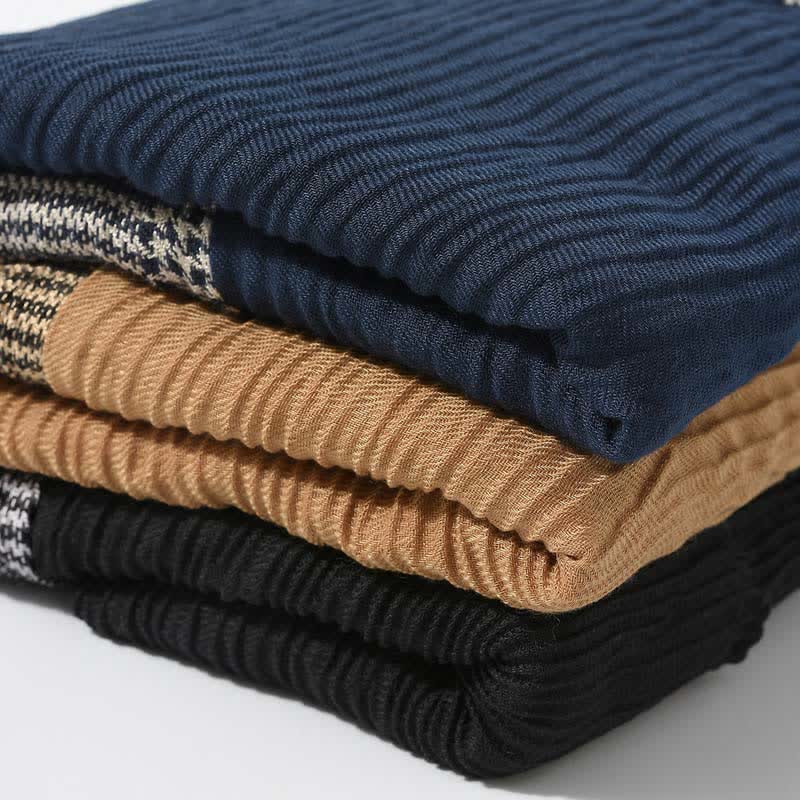Elevate your cold weather look with this vintage-inspired scarf. Featuring a classic black and gray plaid pattern paired with textured knit panels, it effortlessly blends retro charm with modern sophistication. A must-have accessory to stay stylish and snug all season long.