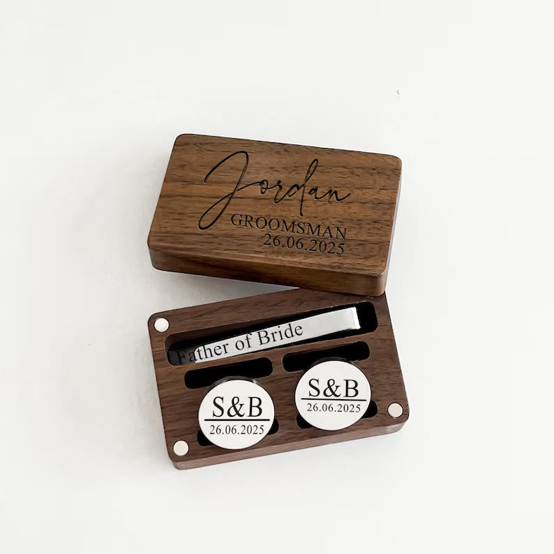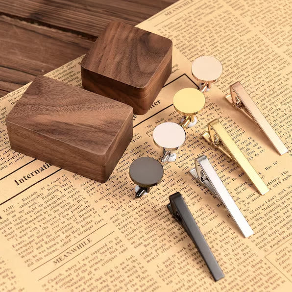 - Package: 1 Pair of cufflinks & 1 tie clip with the wooden box